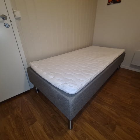 - 1 liten dobbeltseng (120cm), har litt løse ben