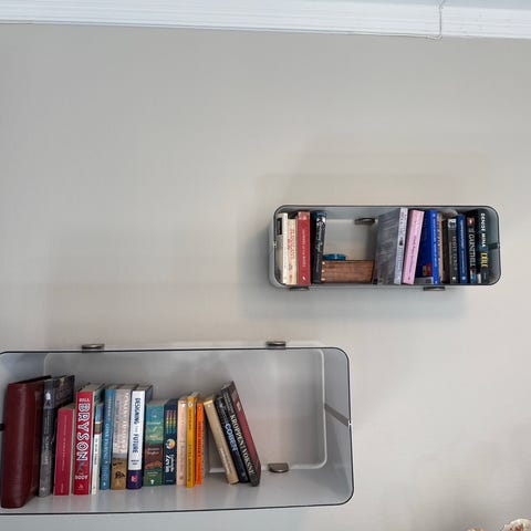 en fin hylle fra svart metal, Bolia, med glass hyller, diameter 56cm