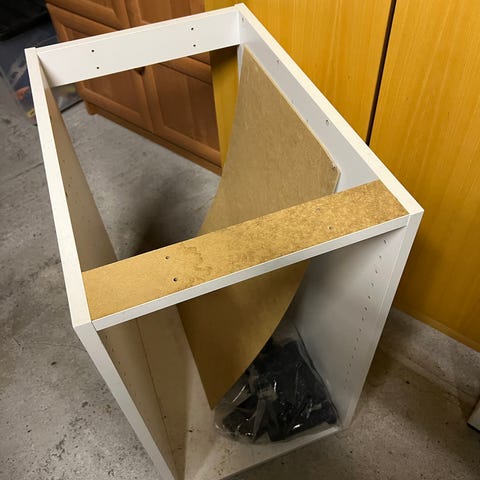 Vi fornyer kjøkkenet. Denne benkeplaten, som har vært toppen på et stort skap, er hel, uten feil, og er kantet på all sidene. Sigdal, fra 2014. 121x63cm