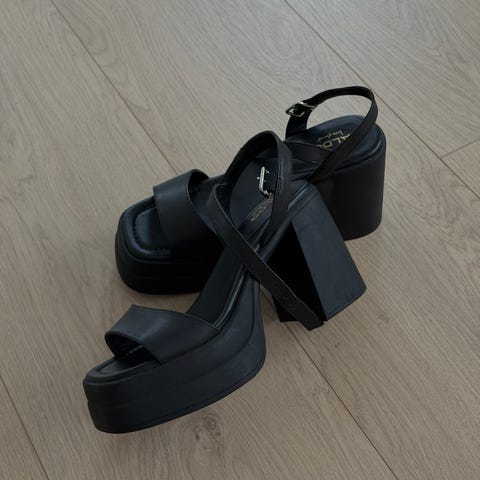 Modellen heter Nicholes Block Heeled Court Shoes With Ankle Strap. Bilde nr 3 og 4 gir best inntrykk av fargen på skoene. De ser lirr mørke ut på mine bilder grunnet dårlig lys.