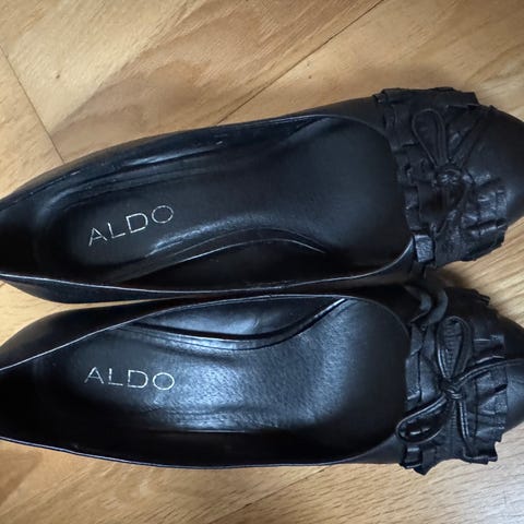 ALDO hæler i størrelse 37. Skoene har høy, kraftig hæl og spiss tå. Modellen har ankelrem med spenne for justering. Fargen er beige/nøytral. Passer til bruk ved anledninger der man ønsker klassiske hæler, for eksempel til kjole, skjørt eller bukse.