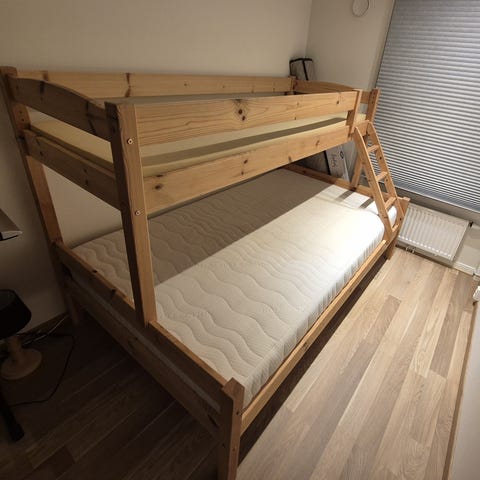 Familie køye/ køyeseng/køyseng. Trefarget.