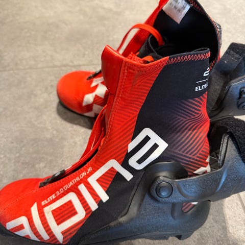 Selger et par pent brukte Alpina Elite Duathlon Junior langrennsstøvler i størrelse 40. Dette er Norges mest solgte racingsko til junior. En solid ankelstøtte med powerstrap gir riktig kraftoverføring og skikontroll i skøyting, mens sålen gir den fleksen som er nødvendig i klassisk stil. Skoen er godt fôret med Thinsulate for kalde dager, og lissesystemet bidrar til en veldig god passform.