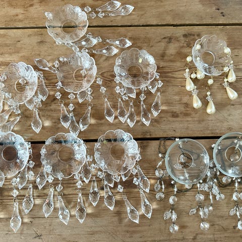 Gamle prismer fra flersrmet lysekrone selges.