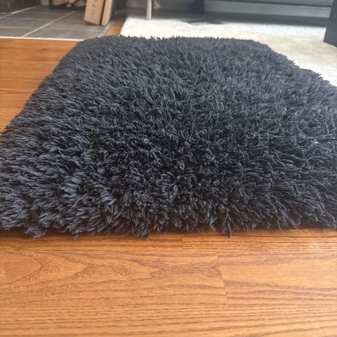 Hay Peas teppe i størrelse 140x200 cm. Teppe med kraftig, knudret struktur i en sort farge,Håndlaget i India. Passer for bruk i stue, soverom eller gang der det er behov for et rektangulært gulvteppe i middels størrelse.