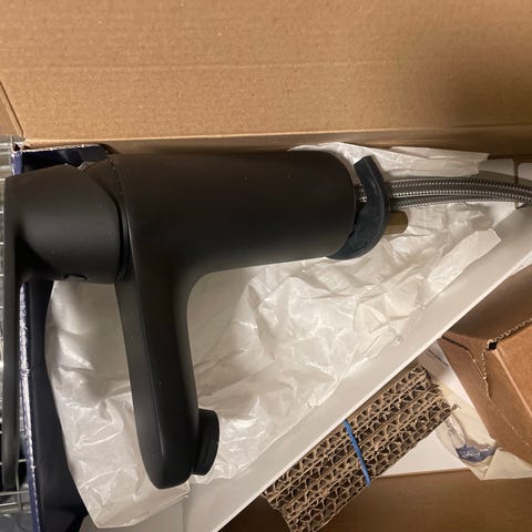 Passer til montering på baderomsservant som vist i monteringsanvisningen, med tilkobling via fleksible slanger gjennom ett hull i servanten.