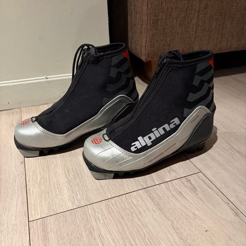 Alpina T5 JR langrennsstøvler i størrelse 28. Støvlene er grå med gule detaljer og har snøring med glidelås-lukking over vristen. Overdelen er i syntetisk materiale med tekstilfôr på innsiden. Yttersålen er tilpasset barn/junior langrennsbindinger. Egnet til klassisk langrenn for barn.