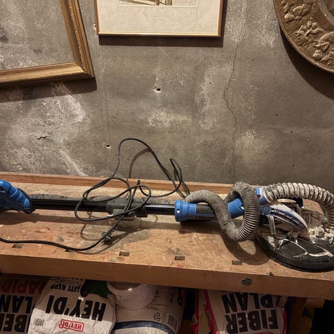 Egnet for arbeid innendørs der det er behov for jevn overflate på gipsplater og lignende underlag. Maskinen har vi brukt sammen med støvsuger for å redusere støv under sliping.