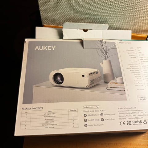 Kan følge med en chromecast, slik at man enkelt kan koble seg på med telefon osv rett på projektoren.