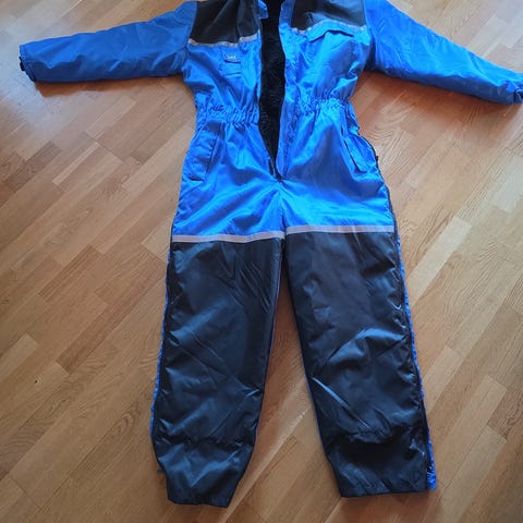 Varmedresser (bevernylon) i blå og svart farge med hette. Hel dress med lange ermer og lange ben. Knepping/glidelås foran og flere lommer på bryst og hofte. Forsterkede partier på knær og nederst på bena. Egnet som arbeidsdress eller ytterplagg ved uteaktiviteter. Den ene er Ultimate sportswear str XL og den andre er Max sport casual wear str L.