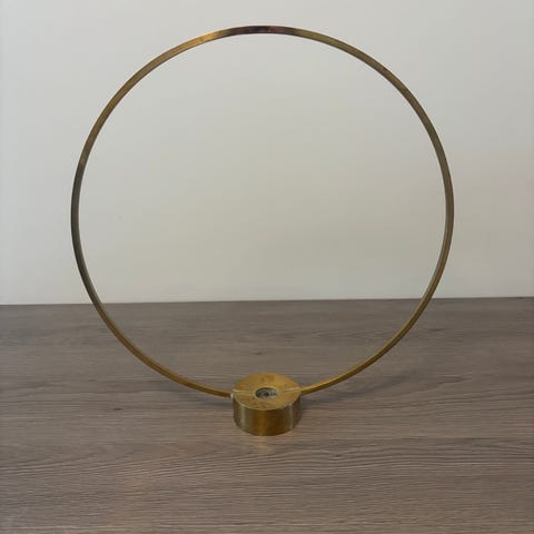 Lysestake med metallring i gull.