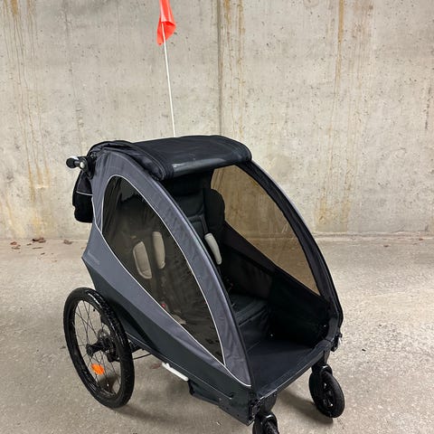 Multifunksjonell sykkelvogn. Plass til 2 barn. Seter i myk polstring. 5-punkts sikkerhetssele. God lagringsplass. Sykkelvognens vekt: 20 kg. Maksvekt: 40 kg.
