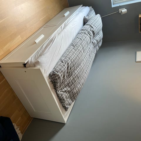 IKEA seng med skuffer i hvit utførelse. Sengen har integrerte oppbevaringsskuffer under liggeflaten, som gir ekstra lagringsplass for leker, sengetøy eller klær. Ribbebunn i tre er inkludert. Egnet som enkeltseng på soverom eller barnerom. Kan trekkes ut til 160cm bredde