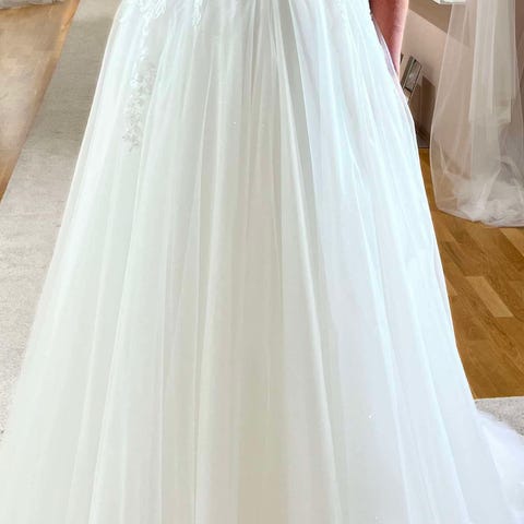 Selger drømmekjolen som jeg brukte i mitt bryllup i september 2025. Kjolen ble kjøpt på Box brud for