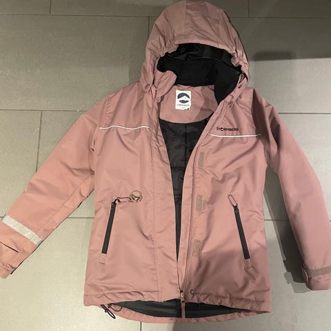 Pent brukt jakke med pelskant på hetta. Størrelse 8 år.