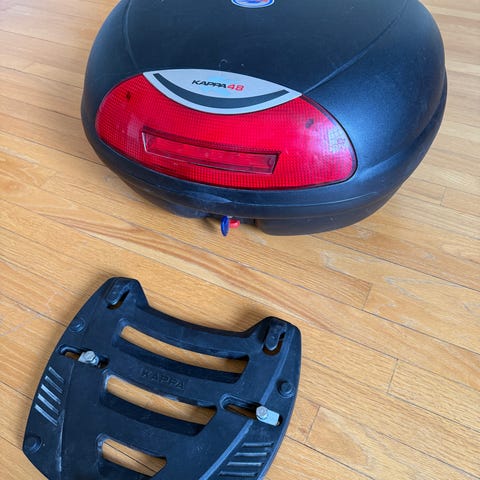 Selger en toppboks på ca. 45 liter. Lite brukt og i god stand. Rommer en MC-hjelm uten problem.