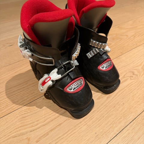 Nordica P Carve 2 alpinstøvler for barn i svart med grønne og blå detaljer. Støvlene har to justerbare spenner i metall og plast for god tilpasning rundt foten. Myk og polstret innersko med gul/grønn fôr gir komfort og støtte. Sålen er merket med størrelseområdet 200–215 mm. Egner seg til vanlig alpint bruk for barn som trenger stabile og lett håndterbare skistøvler.
