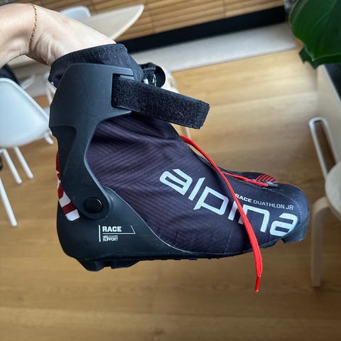 Selger et par pent brukte Alpina Elite Duathlon Junior langrennsstøvler i størrelse 40. Dette er Norges mest solgte racingsko til junior. En solid ankelstøtte med powerstrap gir riktig kraftoverføring og skikontroll i skøyting, mens sålen gir den fleksen som er nødvendig i klassisk stil. Skoen er godt fôret med Thinsulate for kalde dager, og lissesystemet bidrar til en veldig god passform.