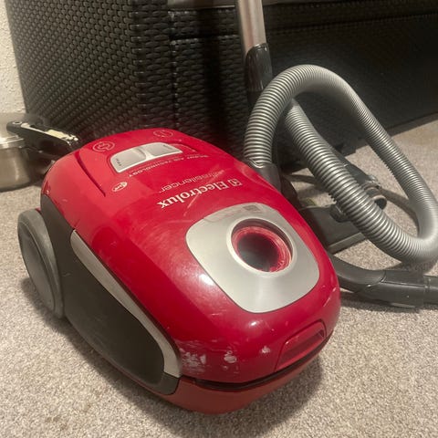 Kjøpt for noen år siden, men brukt relativt lite. Fungerer som den skal og støvsuger veldig godt. Har også moppefunksjon – denne er aldri brukt, så moppene er helt nye og fortsatt i plast.