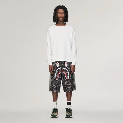 Adidas x A Bathing Ape Streetwear bukse i unisexmodell, størrelse M. Buksen har svart kamuflasjemønster med karakteristisk A Bathing Ape-logo foran. Klassiske tre striper fra Adidas går ned langs sidene av bena. Modellen har vid, løs passform med avkortet benlengde. Elastisk linning med snøring gir justerbar passform. Buksen har sidelommer. Egner seg til hverdagsbruk og ulike typer lett trening eller fritidsaktiviteter. Kjøpt på Adidas confirmed på dropp nå i feb. Kvittering medfølger . Helt ny med tag. Kan sendes. No trade. Jaquard Bape Bukse Adidas strl M.