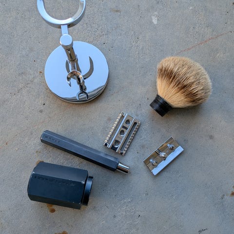 Feather Artist Club barberkniv med utskiftbare blader, har en annen, så denne er veldig lite brukt. Du får med en pakke barberblader som passer til denne typen barberkniv. Lenke til hvor jeg kjøpte den med mer info: https://www.barbershop.no/products/feather-artist-club-ss-barberkniv?