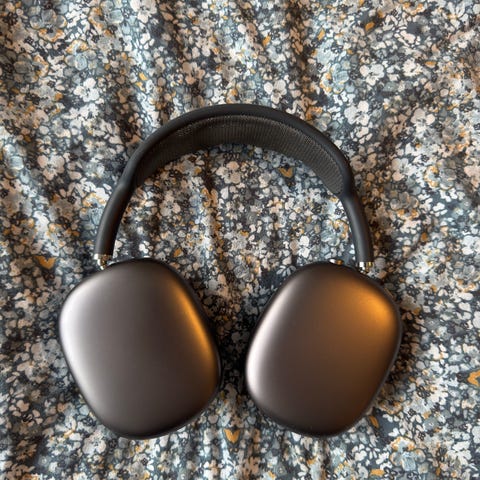 Apple AirPods Max hodetelefoner i svart. Over-ear hodetelefoner med justerbar hodebøyle og utskiftbare øreputer. Leveres med Smart Case som beskytter klokkene under oppbevaring. Trådløse hodetelefoner som kan brukes til musikk, film, spill og samtaler sammen med kompatible Apple-enheter og andre enheter som støtter Bluetooth.