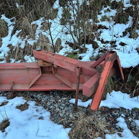 Skjæret har ikke vært brukt på noen år og selges som det står. Det er overflaterust og trenger en vask/smøring, men stålet er tykt og fritt for alvorlige skader. Hydraulikkslanger bør sjekkes før bruk.