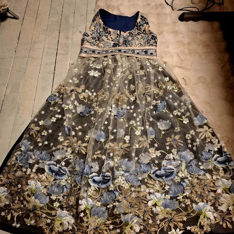 Festdrakt med midjemål 80cm,byste 95 og passer høyde 165. Har tyllskjørt som kan brukes uten drakten 😊