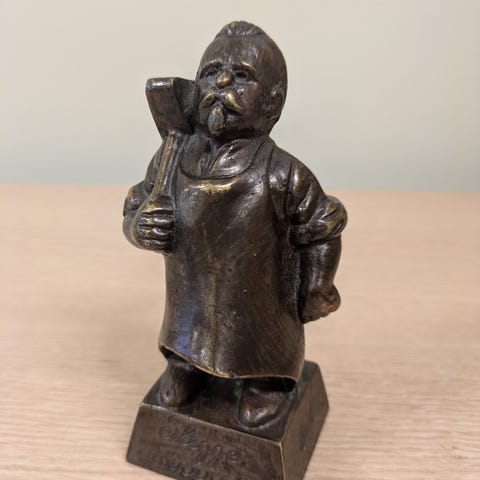 2 store fisker/jegerfigurer + 1 mindre retro barnefigur i metall.