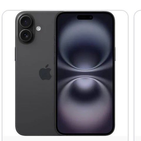 Apple iPhone 16 mobiltelefon med 128 GB lagringskapasitet i svart farge.