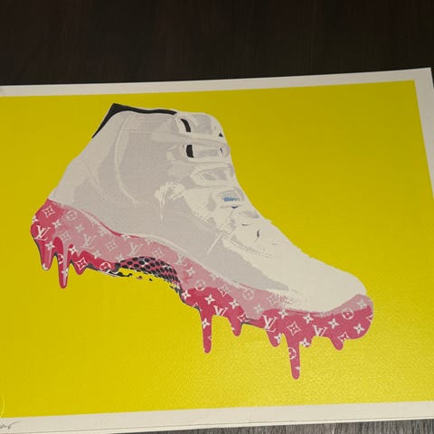 Selger et stilrent og moderne street art / pop art-kunsttrykk med motiv av en sort sneaker. Uttrykket er minimalistisk, urbant og samtidig kraftfullt – et motiv som spiller på street culture, fashion og moderne design.