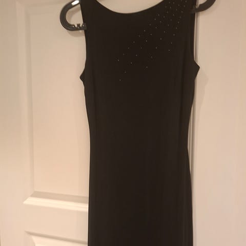 Svart fotsid kjole med sorte paljetter.