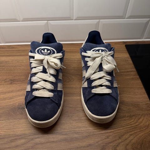 Adidas campus selges pent brukte i størrelse 45 2/3. Modellen har grå overdel med hvite striper og hvit sålekant. Klassisk adidas lav modell som passer til hverdagsbruk. Skoeske følger om ønskelig!