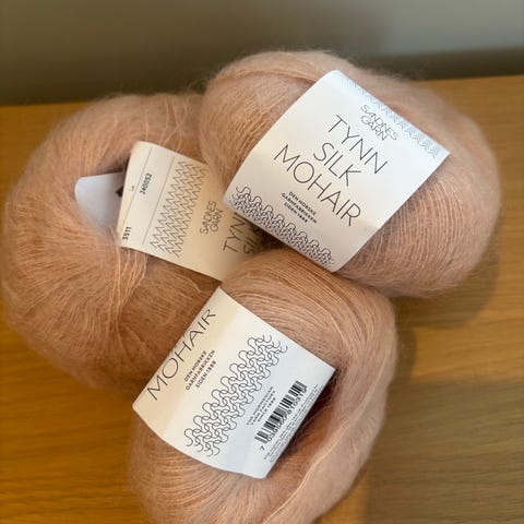 Rauma Garn Plum garn i gul farge. Garnet er en tynn og pusete kvalitet som egner seg godt til strikking og hekling av blant annet gensere, sjal, luer og andre plagg og tilbehør. Nærmere informasjon om fiberinnhold, anbefalt pinnestørrelse og løpelengde står på banderolene på nøstene.