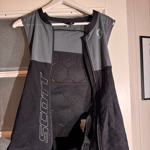 Dainese beskyttelsesvest og bukse i sett. Farge svart, størrelse XL i bukse (men oppleves som L) og Vest i M. Vesten har glidelås i front og integrerte beskyttelsespaneler i siden. Buksen har seler med ryggplate og polstret parti bak.