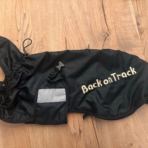 Back on Track hundedekken i svart. Dekkenet har reflekskant og justerbare stropper for tilpasning rundt hundens kropp. Egnet til bruk på tur eller i hverdagen for å gi ekstra beskyttelse og komfort til hunden. Størrelse 43.