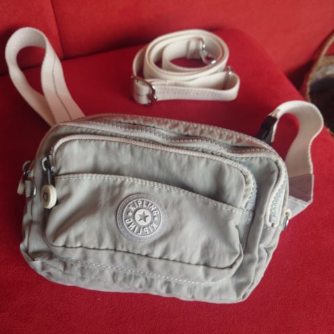 Kipling rumpetaske i stoff til dame. Vesken har et hovedrom med glidelås og en frontlomme med glidelås. Justerbar rem gjør at den kan bæres rundt livet eller skrått over kroppen. Fargen fremstår som grønn. Egnet til oppbevaring av nøkler, mobil og småting til hverdagsbruk eller reise.
