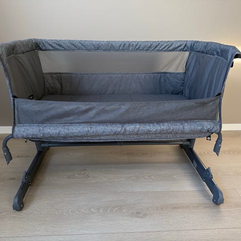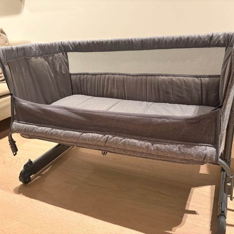 Pent brukt Yngri Bedside Crib selges. Kjøpt i mars 2025 og brukt mellom mai og september.