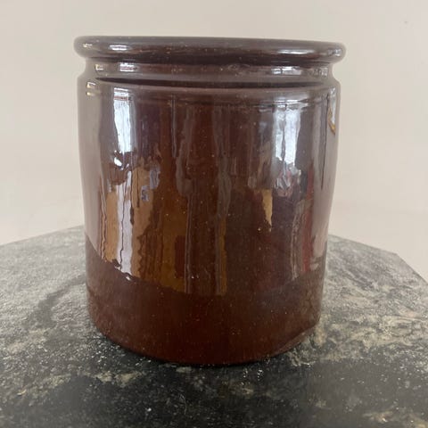 Søt liten krukke laget I keramikk, glassert. God stand.