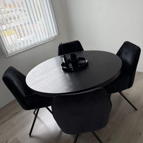 Bordet har en stilren og moderne design som passer perfekt i mindre spisestuer.