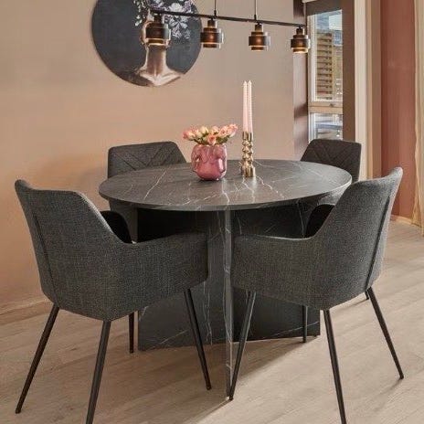 Rundt spisebord med svart marmor-look
