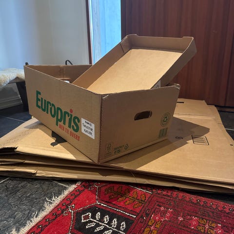 Fint brukte og noen godt brukte flytteesker gis bort mot snarlig henting