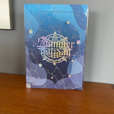 Enhypen Daydream white midnight album i fysisk utgave. Inneholder albumboks med omslag, fotobok, fotokort, og klistremerker.