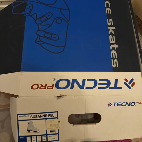Head hvite danse skøyter i størrelse 38. Hvit modell med dekorativt mønster på siden og snøring foran. Skøytene leveres i original eske merket «Head Ice Skates».
