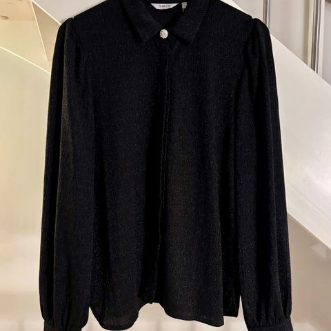 Blusen er i god stand, men har en liten strekk i sømmen ved festet av venstre erme (se bilde 5). Dette er lite synlig ved bruk, men pris er justert mtp anmerkningen.