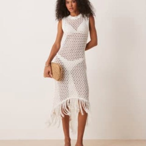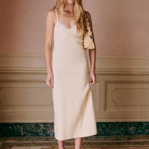 Sezane sommerkjole i hvit bomull for dame i størrelse M. Kjolen er ermeløs med høy hals og kort lengde. Lett og behagelig kvalitet og passer godt til varme dager. Passer til hverdagsbruk og flottere anledninger der man ønsker en lett og luftig kjole i bomull.