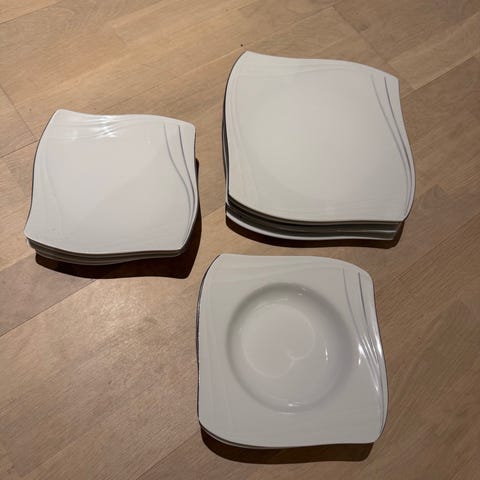 4 stk store tallerken, 4 stk små tallerken og 4 stk dype tallerken fra Celebration Firkløveren selges.