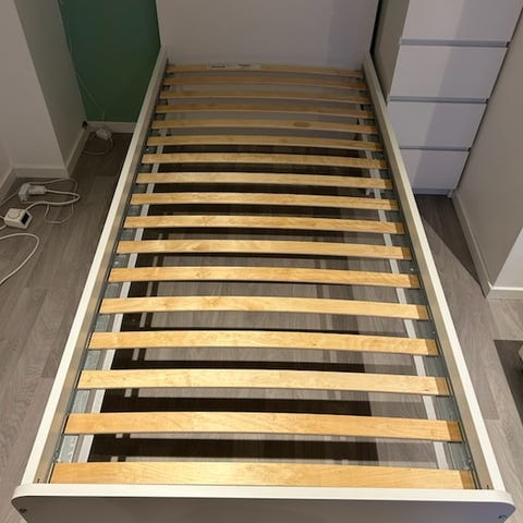 IKEA MALM seng med LURØY sengebunn. Passer til 90x200 madrass (ikke inkludert). Egnet som enkeltseng på soverom, gjesterom eller barnerom. Praktiske skuffer som rulles inn under sengen er inkludert. Leveres demontert. Nypris 2495 kr.