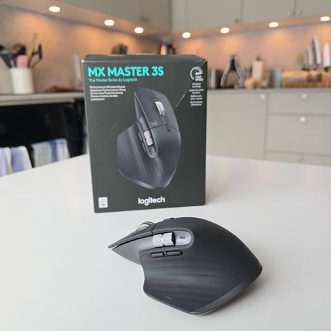 Musen er utformet for høyre hånd med ergonomisk form og flere tommelknapper. Den har både Bluetooth og USB-mottaker (Logi Bolt) for trådløs tilkobling. MX Master 3S kan kobles til opptil tre enheter og bytte mellom dem med en knapp på undersiden.