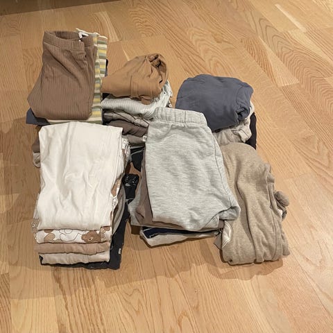 Pakken inneholder shorts, kortermede bodyer, singleter, t-skjorter, en kortermet jumpsuit, en tynn bukse og kortermede pyjamaser.